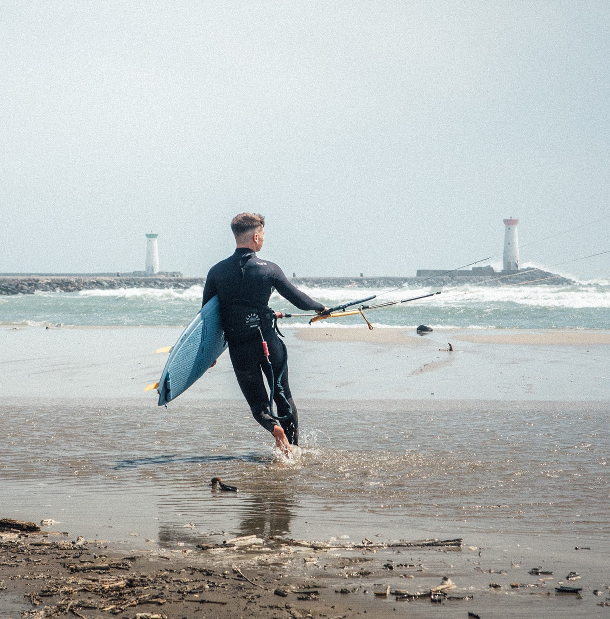 Our kite leash attachment point is located towards the front of the harness, allowing easy and direct access for release in case of an emergency. Attached to the straps on the right-hand side by default, the metal ring can easily be moved to the left straps.