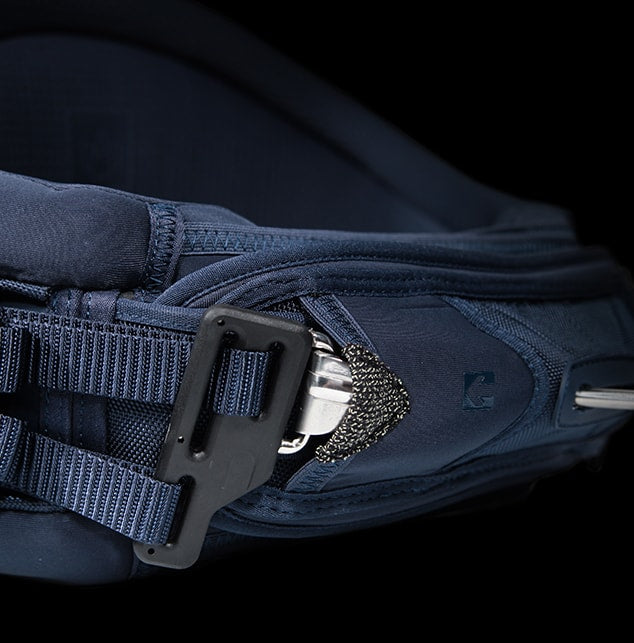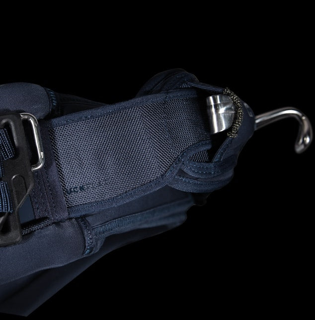 Our kite leash attachment point is located towards the front of the harness, allowing easy and direct access for release in case of an emergency. Attached to the straps on the right-hand side by default, the metal ring can easily be moved to the left straps.