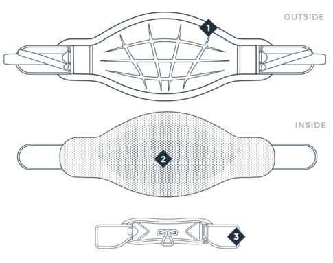 The Adaptive Shell stiffness shades from hard in the center area to softer on the edges. The stiff center-belt prevents the harness from folding and compressing your body while preserving a good lumbar support. The softer outline preserves intuitive mobility and adaptability.