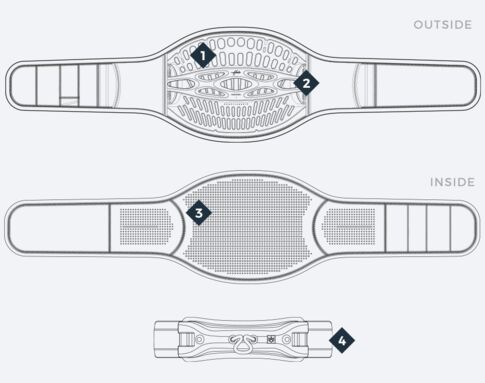 It is not in contact with the user nor with the back of the Adaptive skin; its function is to manage the mechanical pressure that the harness receives.
