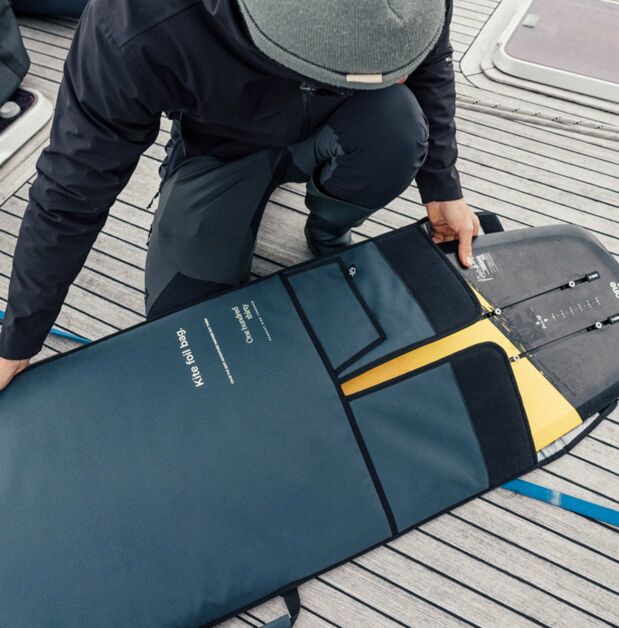 The Kite foil bag comes with a different entry system; It is designed to be able to protect the board while the mast is attached. It features a high protective foam and we used velcros instead of zipper so the board doesn’t get damaged.