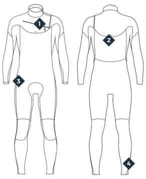 Some areas are very sensitive to friction, tensions and tearing. All MANERA wetsuits have been designed with a demanding brief including: