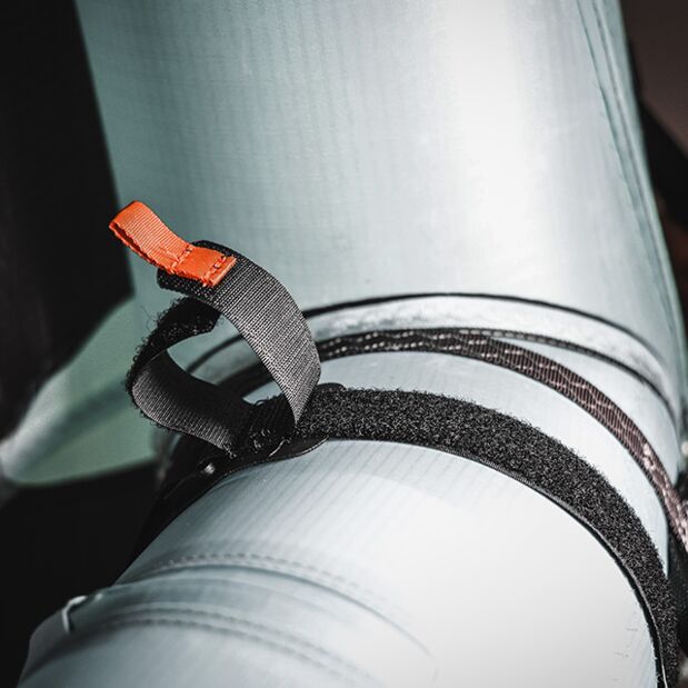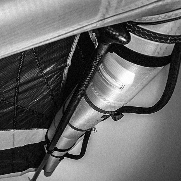 The « Wing Paddle Attachments » can be velcroed around the wing’s center strut. They allow for any paddle to be fixed along the center strut, enabling for comfortable “deflaters”. The paddle goes unnoticed, which makes the upwind phase much easier and more comfortable.
