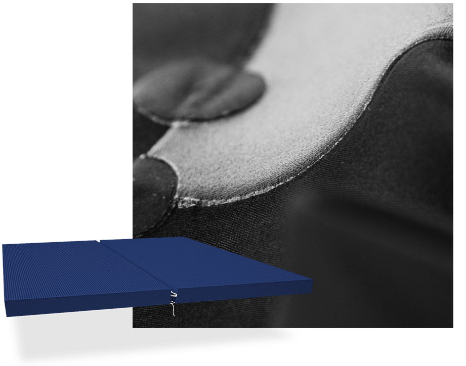 The different neoprene layers are fused on the tips of arms and legs to make it thinner and more aesthetic. It protects the inside neoprene foam (AIR FOAM) by covering it.