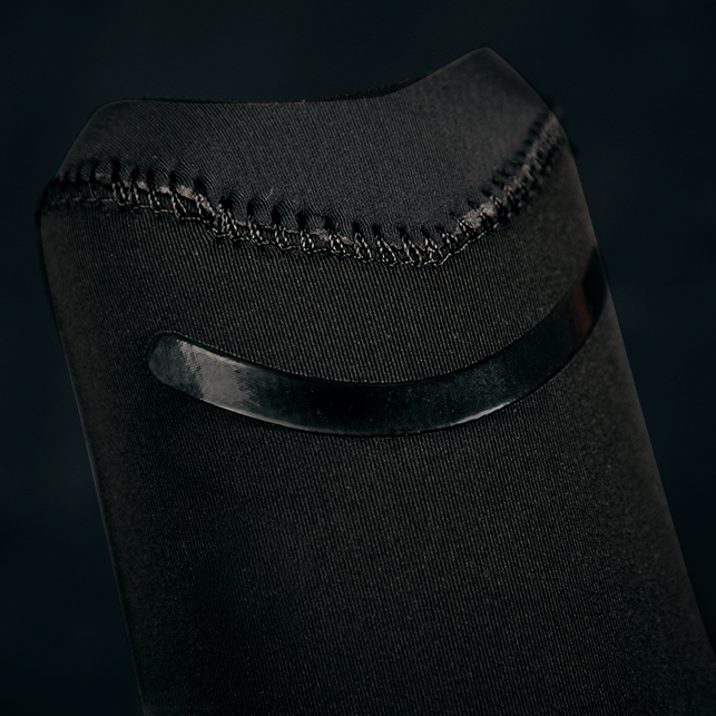 The sealing print around the shin brings a better grip between the wetsuit and the boot. Coupled with the wetsuit SEALING PRINT, it prevents the wetsuit’s leg from rolling up.